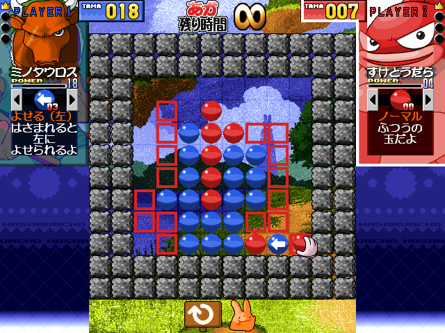 はさまれると、盤上の玉が全てよせられます(ただし、「いわ」「かべ」はよせられません)。